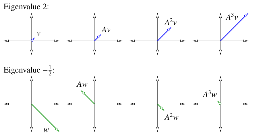 定理:如果 $v$ 是 $A$ 的特征向量,并且其对应的特征值为 $\lambda$,那么 $v$ 也是 $A^k$ 的特征向量,对应的特征值为 $\lambda^k$
