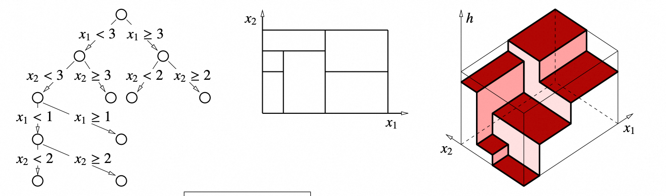 • 右图表示对应的分段常数函数,每个特征空间中的区块都对应了一个常数的叶子节点预测值