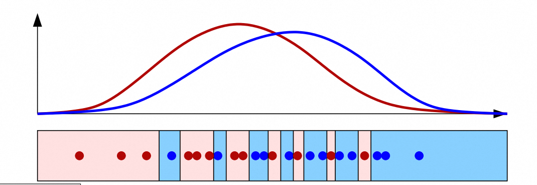 对于上图两个重合非常大的概率分布,得到一个叶子节点的纯净决策树一定会造成过拟合