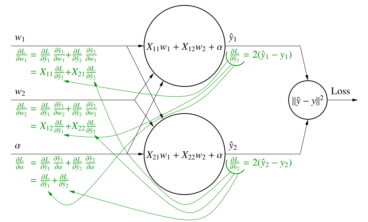 我们可以使用链式法则求每个节点的梯度