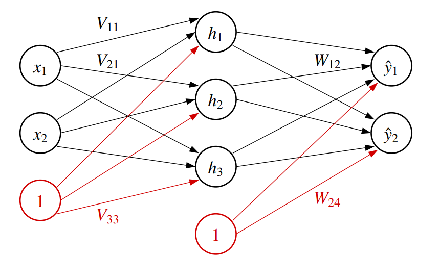 $$ \begin{align*} h &= s_1(Vx) \\ \hat{y} &= s(Wh) = s(Ws_1(Vx)) \end{align*} $$神经网络可以有多个输出节点,所以我们可以基于相同的隐状态训练多个分类器,有时候不同的分类器可以使用不同隐藏层神经元,并且多个分类器的结果可以互相补充